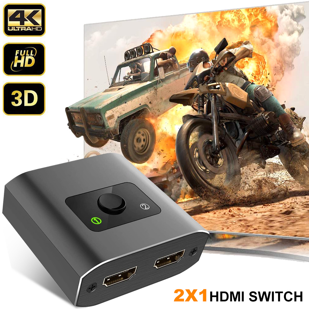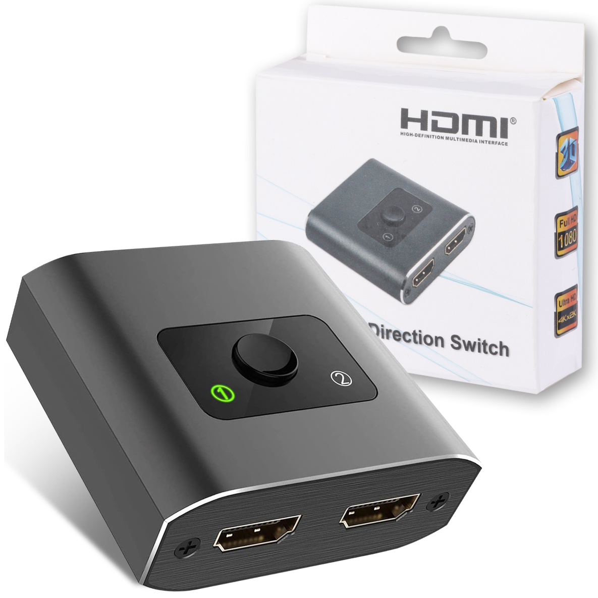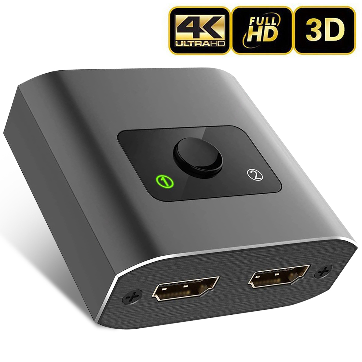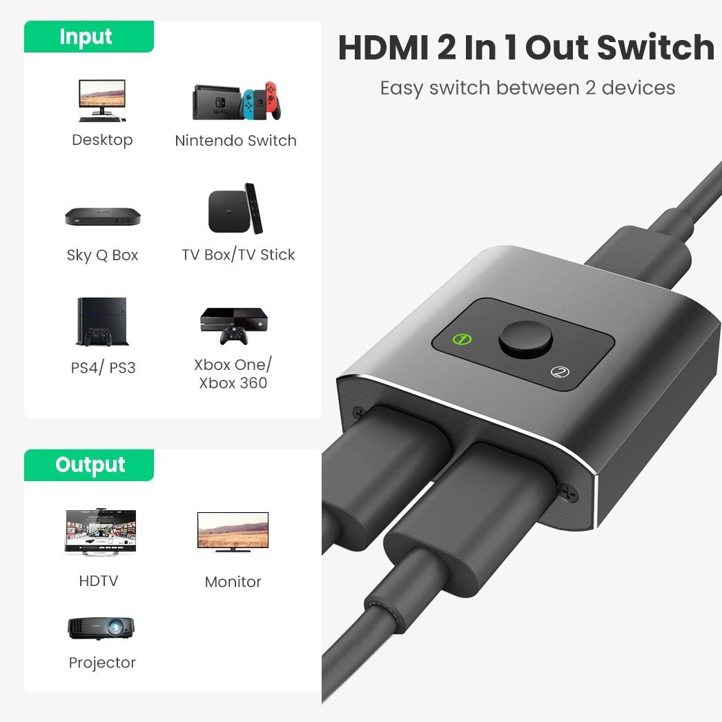 - 1x2 or 2x1 HDMI SWITCH - Modern design, HDMI bi-directional splitter help you connect two HDMI sources to one HDMI display, or connect one HDMI source to toggle between two displays (two screens CANNOT display simultaneously).