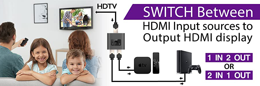 - PLUG AND PLAY - This HDMI Switch is easy to set up and operate. just connect your HDMI devices and press the button of HDMI Switch to quickly Switch to another device, the LED light tells you which port is active. No external power supply needed, This portable design saves space and time for your entertainment.(HDMI Cable NOT Included).