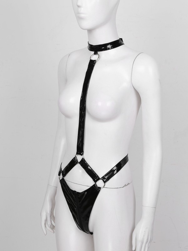 Women One Piece Clothing Smooth Surface Low Waist Mirror Emulsion Ammonia Solid Color Soft Heart Shape Buckle Briefs Underwear.