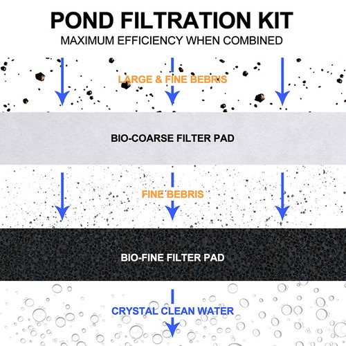 •CRYSTAL CLEAR POND WATER - Place your pond filter pad in flowing water such as water being pumped through your pond skimmer box to trap to remove uneaten food, waste, decaying plants, detritus, and other large and fine floating particulates from the water.