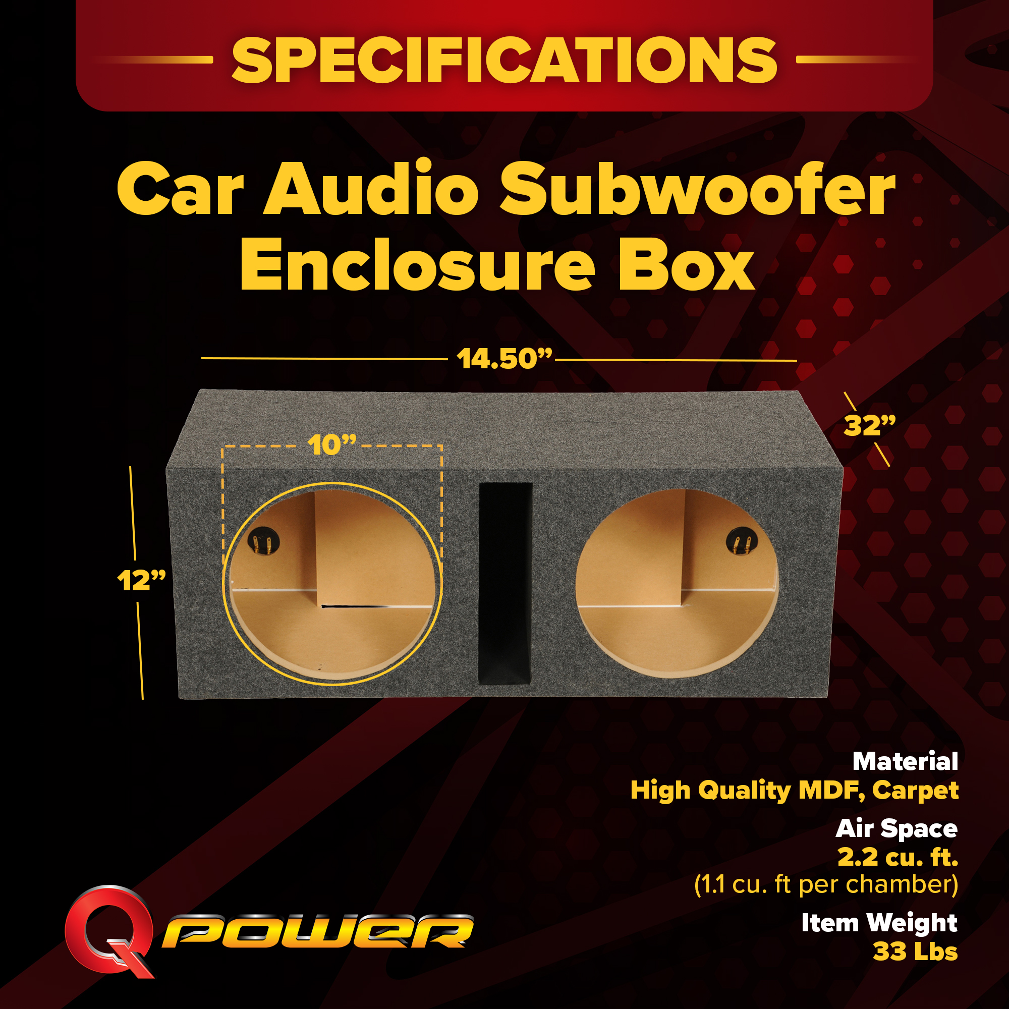 Built to give your vehicle powerful speakers, the QBASS Dual 10-Inch Subwoofer Box 2-Pack by QPower ensures you're the loudest, strongest car on the road.