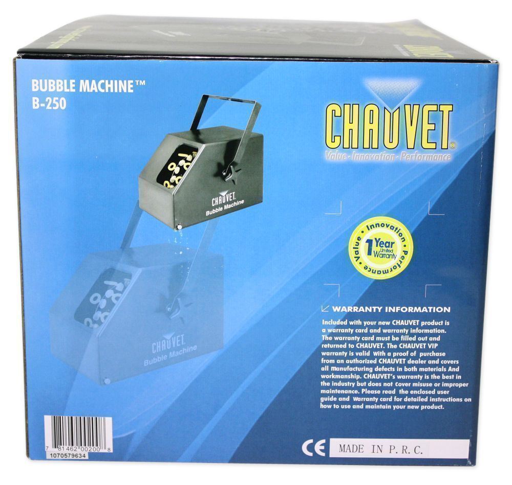 The B-250 from Chauvet is a great bubble machine. This is not a toy, it is designed for professional use. It is perfect for larger areas, with its high output. The beautiful thing about this model is that it is very light and portable.