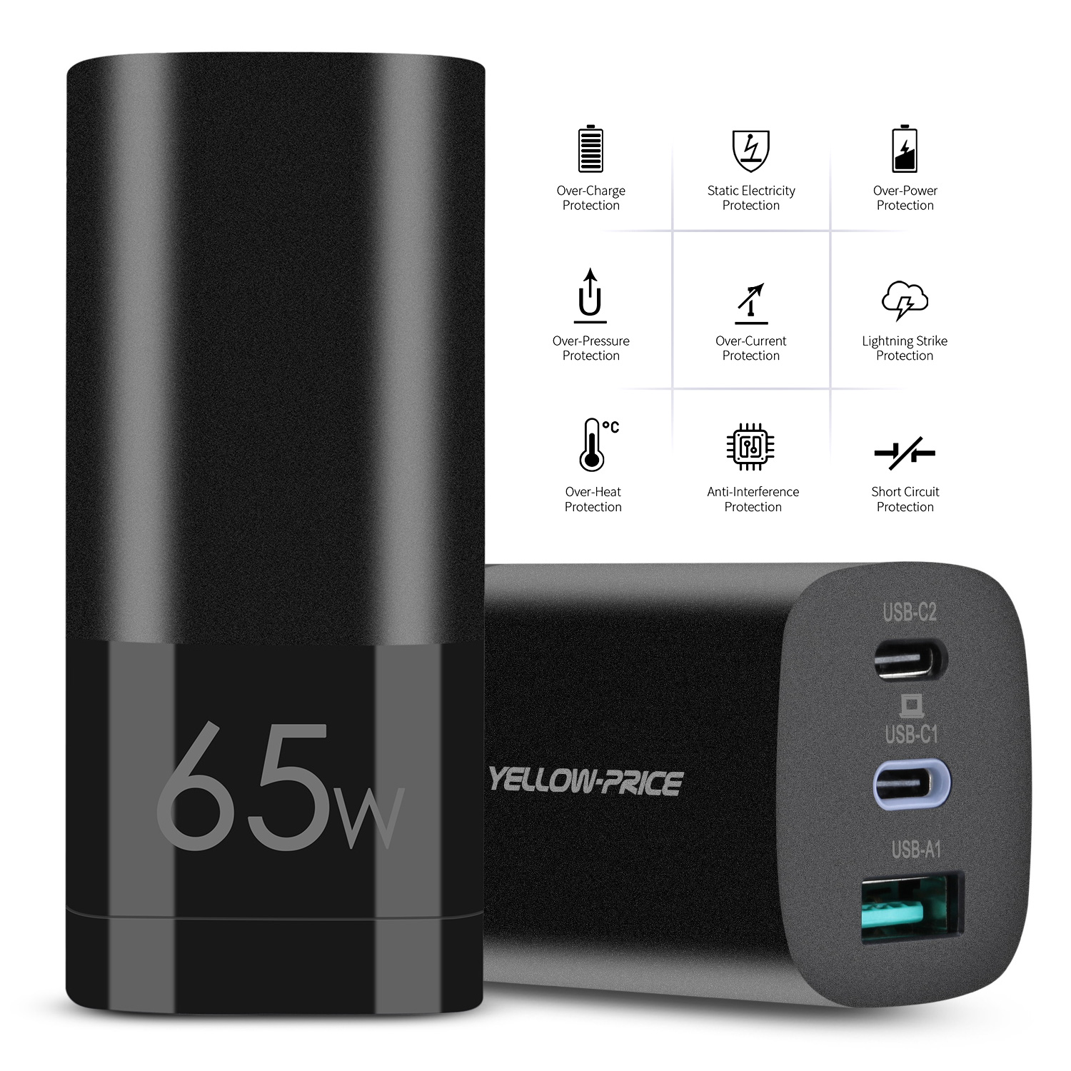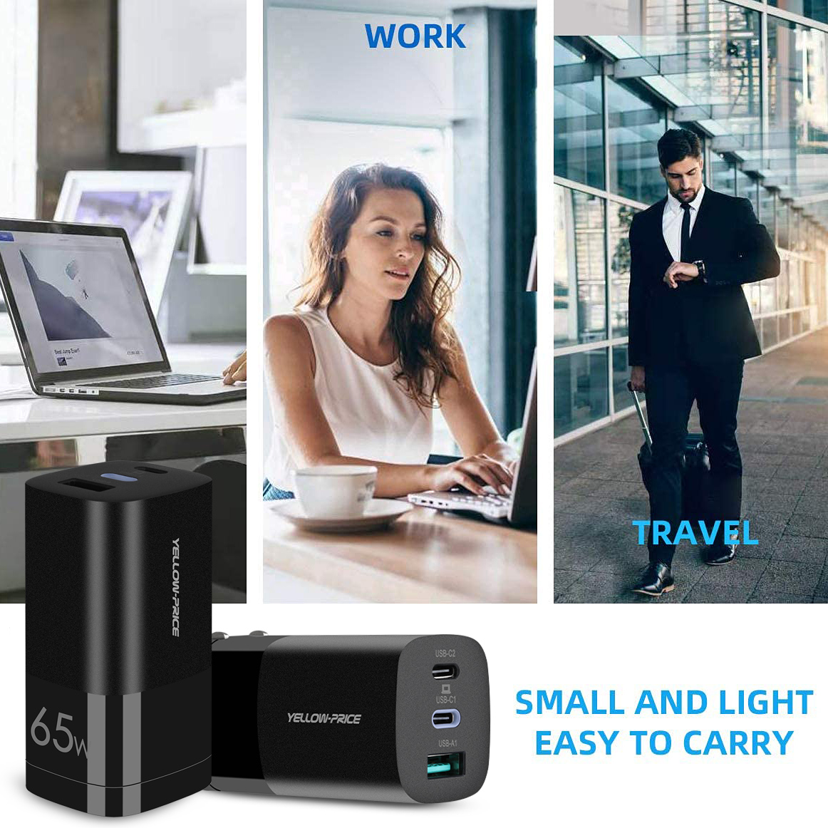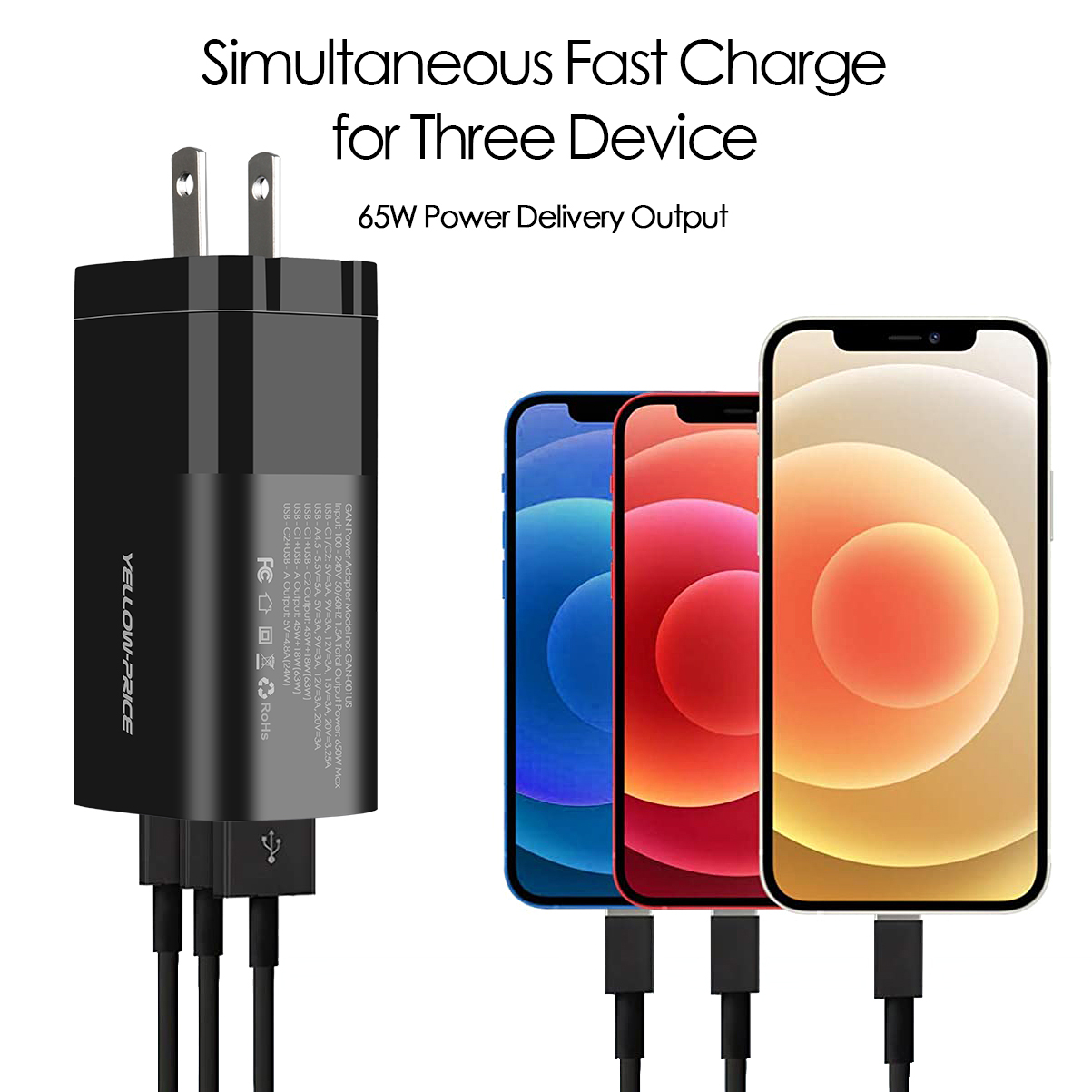 - Intelligent Power Allocation - The GaN charger combines advanced cleverly smart power distribution. It can distribute 65W of power between 2 or 3 devices when charging simultaneously and supports fast charging up to 65W when a single device is connected.