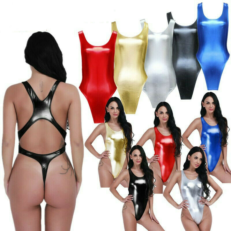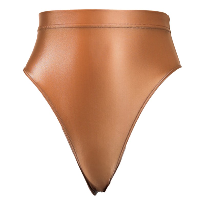 Womens Glossy Solid Color High Waist Briefs Underwear Swimsuit Bottom.