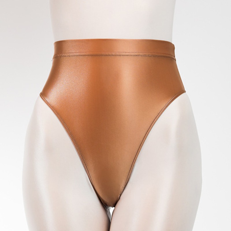 Womens Glossy Solid Color Thongs High Waist Briefs Underwear.