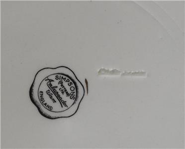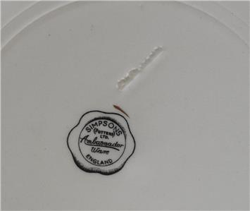 This is a vintage Simpsons Potters LTD Ambassador Ware England pattern or design dinner plate. It is about 10 5/8 inches across. There are not any chips or chips!!!!