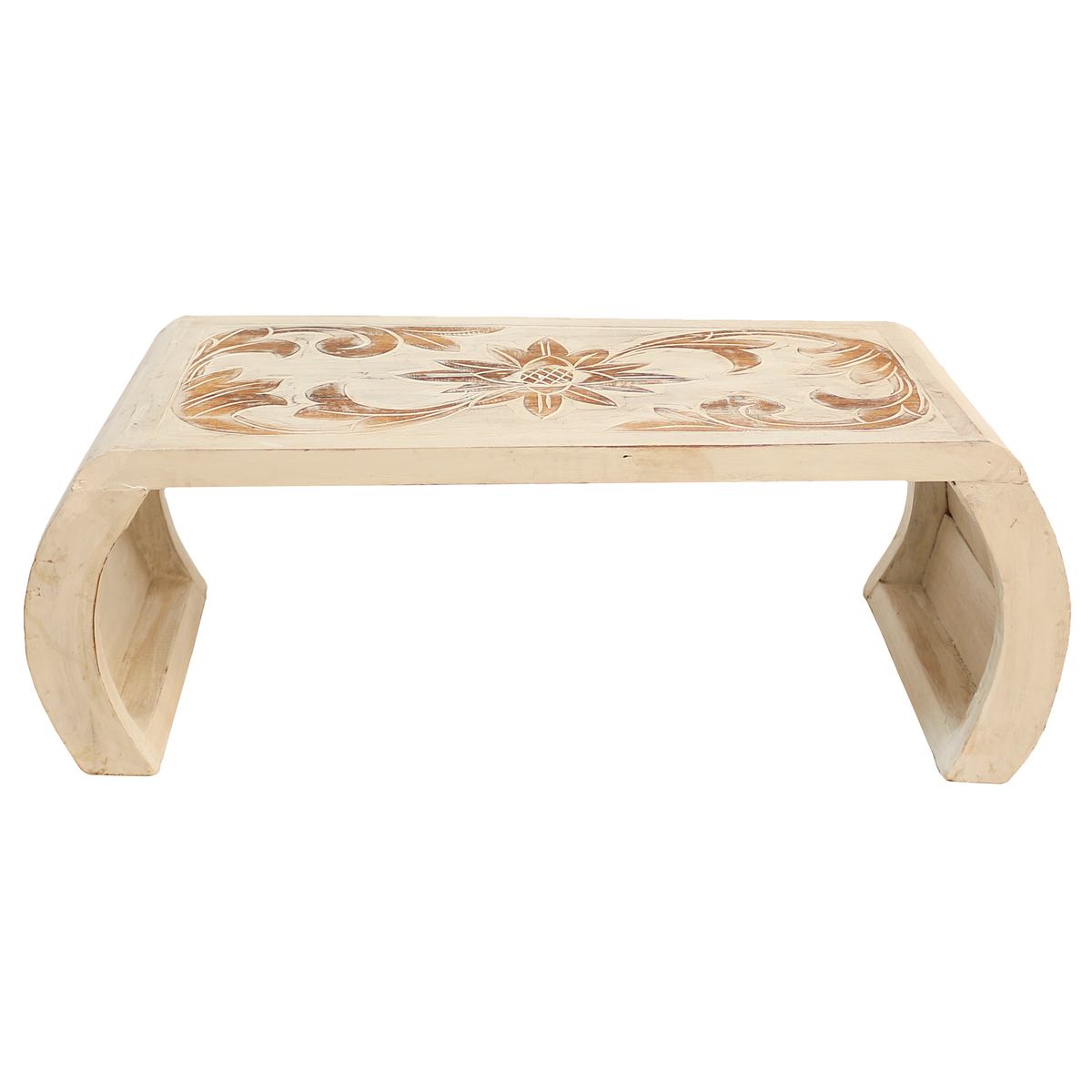 Das asiatische Design setzt sich deutlich von den üblichen Einheitsmöbeln ab. Die elegant geschwungenen Beine im klassischen Stil eines Opiumtisches in Kombination mit den aufwendigen Schnitzereien verleihen dem Tischchen sein elegantes und edles Aussehen. Dabei ist der Opiumtisch auch noch vielseitig einsetzbar z.B. als Beistelltisch,Couchtisch oder Blumentisch.