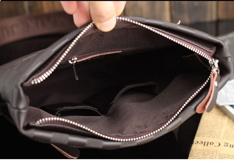 Keep your everyday or excursion essentials handsomely together in this Bag. This luxurious yet affordable top-grain leather, compact vertical messenger bag features contrast stitching and has zippered closures. It opens to reveal a spacious main compartment generous enough to accommodate your iPad in its sleeve, your wallet, checkbook, cell phone, and digital camera, plus all the other stuff you need to haul around. A front pleated pocket can hold other must have items.