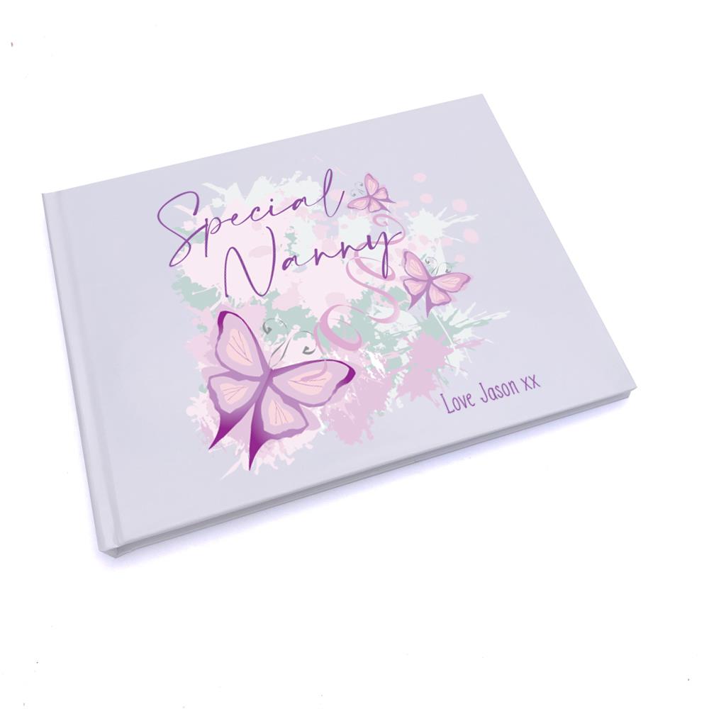 Personalised Special Nanny Pink & Purple Butterfly Gift Guest Book GB-125