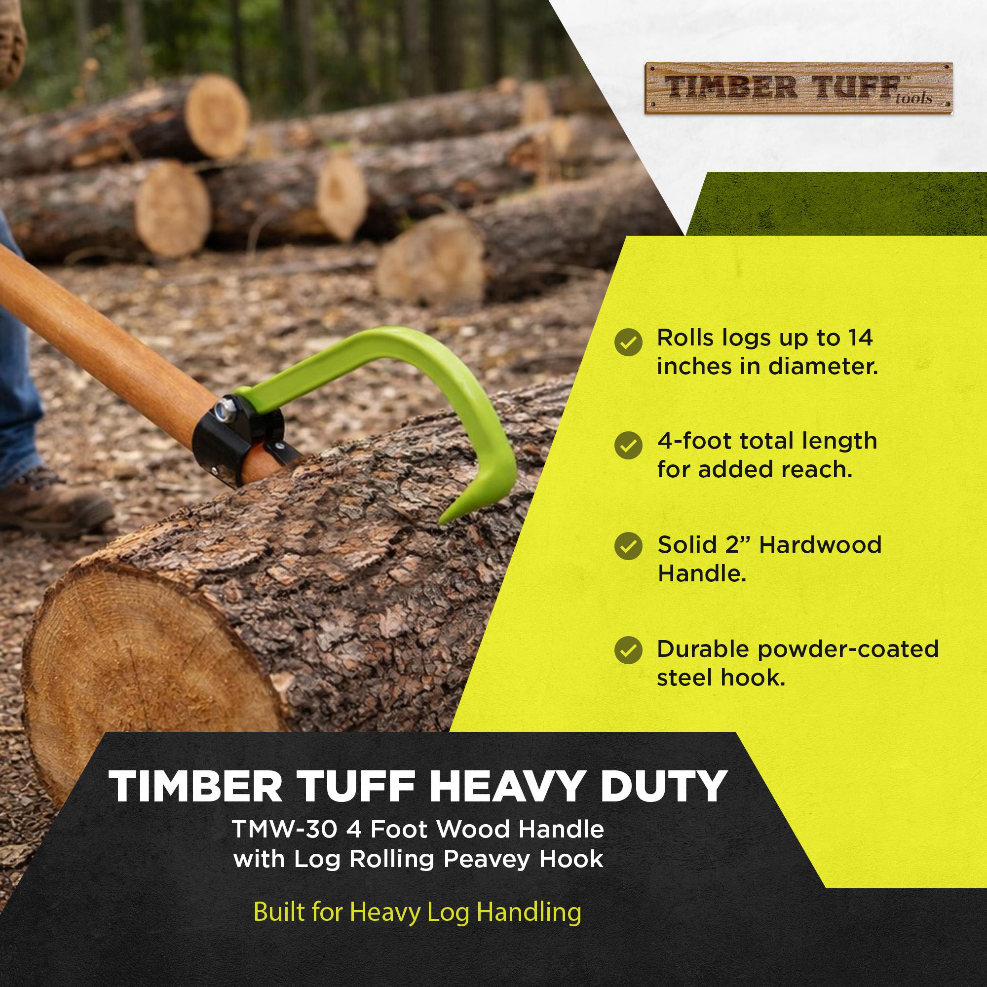 When it comes to handling large, cumbersome logs and pieces of timber, you'll be saying "can" instead of “can’t” because you can make quick work of any moving task with the Timber Tuff 4-Foot Forestry Log Rolling Cant Hook Tool. Built for professional loggers, sawmills, and firewood enthusiasts, this heavy-duty cant log roller offers the leverage and control needed to move, roll, or position logs with precision.