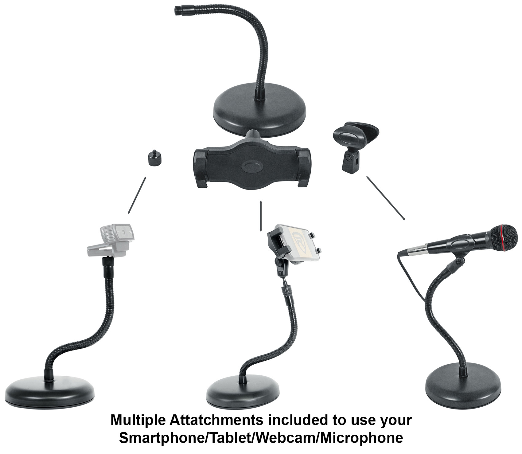 You can use this interchangeably as a smartphone/tablet stand, mic stand, or web camera stand.