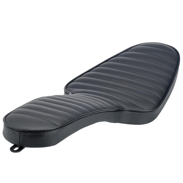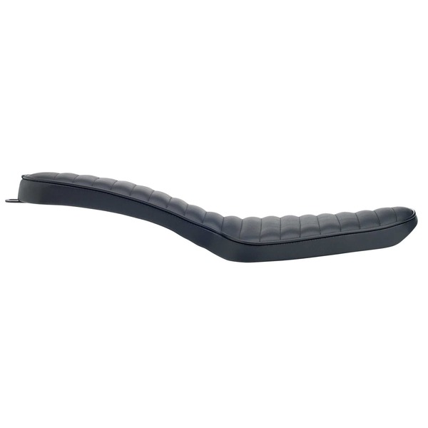 The Horizontal Pleated Sully's 2-up seat fits 1982 - 2003 Sportsters, and bolts in place using the stock fender mount nut, bolt, and hole. These seats are USA made start-to-finish in Centerville, Indiana at Sully's Customs. This seat measures 27 1/4" in length including the mounting tab, 10" at the widest point, and 5 3/4" wide at the passenger area.
