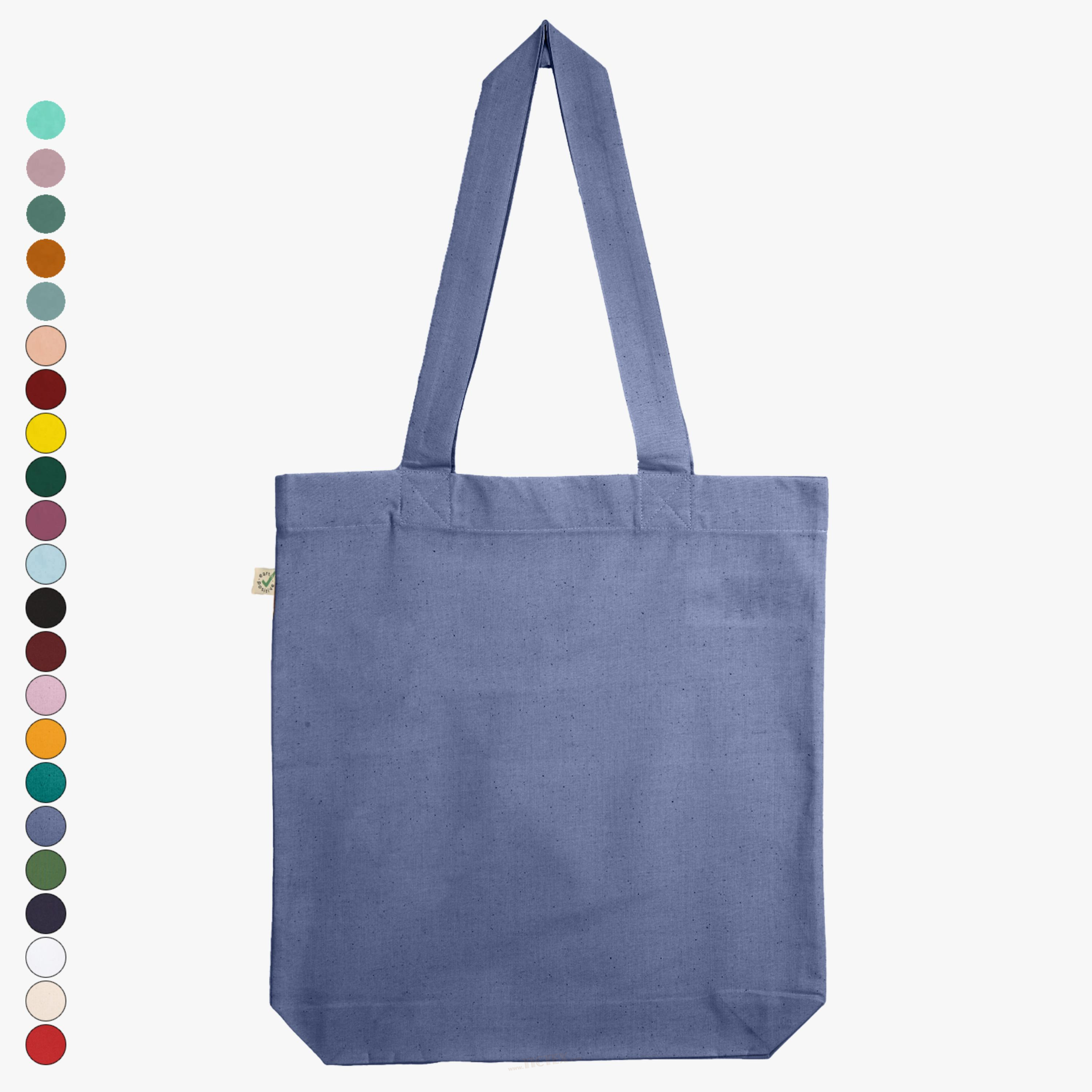 Praktische Tragetasche mit langen Trageriemen aus Biobaumwolle.