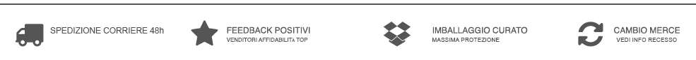 Per i titolari di Partita Iva la richiesta di Fattura Elettronica deve essere effettuata in fase di pagamento inserendo la richiesta, comprensiva dei dati necessari, nelle Note al venditore o contestualmente all'ordine tramite la messaggistica di Ebay.Per motivi di registrazioni fiscali le richieste di fatturazione elettronica pervenute dal giorno successivo a quello dell'acquisto non potranno essere prese in considerazione.Quando riceverete il prodotto vi preghiamo di verificarlo immediatamente e rilasciare Feedback Positivo. Non rilasciate feedback negativi o neutri prima di averci contattato, se si è verificato un problema dipeso da noi faremo del tutto per risolverlo.