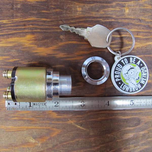 This motorcycle ignition switch is nice and compact and features a chrome bezel. This all-purpose keyed ignition switch can be uséd when wiring your bike, it features 3 positions, off, accessories, and on. Easy to wire. This ignition switch measures 2 inches long from bezel to the back plate and 1-1/4 inches in diameter. Comes with two keys. This switch utilizes a 3/4 inch D-shaped mounting hole. It is a direct replacement for Harley-Davidson OEM # 71425-77. Stock fitment for XL Sportsters 1979-93, FXR 1982-94 FX 1975-85 (except FXWG), and FXS 1970-85.