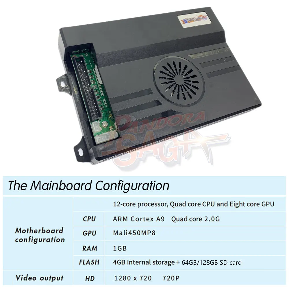 🎮[ORIGINAL Multifunctional SYSTEM]: Original 3D Pandora Saga EX come with the Powerful 3D system. Better user interface and user experience. HD 1280x720P Resolution via HDMI-compatible/VGA. ·Pause/Exit in games; ·Save/Load Games; ·Hide Games; ·Favorite GameList; ·Search Games; ·Recent games; ·External USB controller; ·multiplayer games(4 players); ·Customizable Buttons; ·Game Classification; · Image Enhancement; ·One Key Switch ·Language(English/Chinese/Korean/Japanese/Spanish) etc. 🎮[ADD EVEN MORE GAMES]: <1>Download games from the game market via WIFI. <2>Built-in USB ports allows you to add new games in a flash,copy your games to USB drive and insert into the lower USB port,and match the emulator in the setting system. Then the new games show up in the game lists and are added to the games list once launched. 🎮[Multiple Games]:Support MAME,FBA,FC,SFC,PCE,GBA,GBC,MD,PSP,PS,N64 emulators.