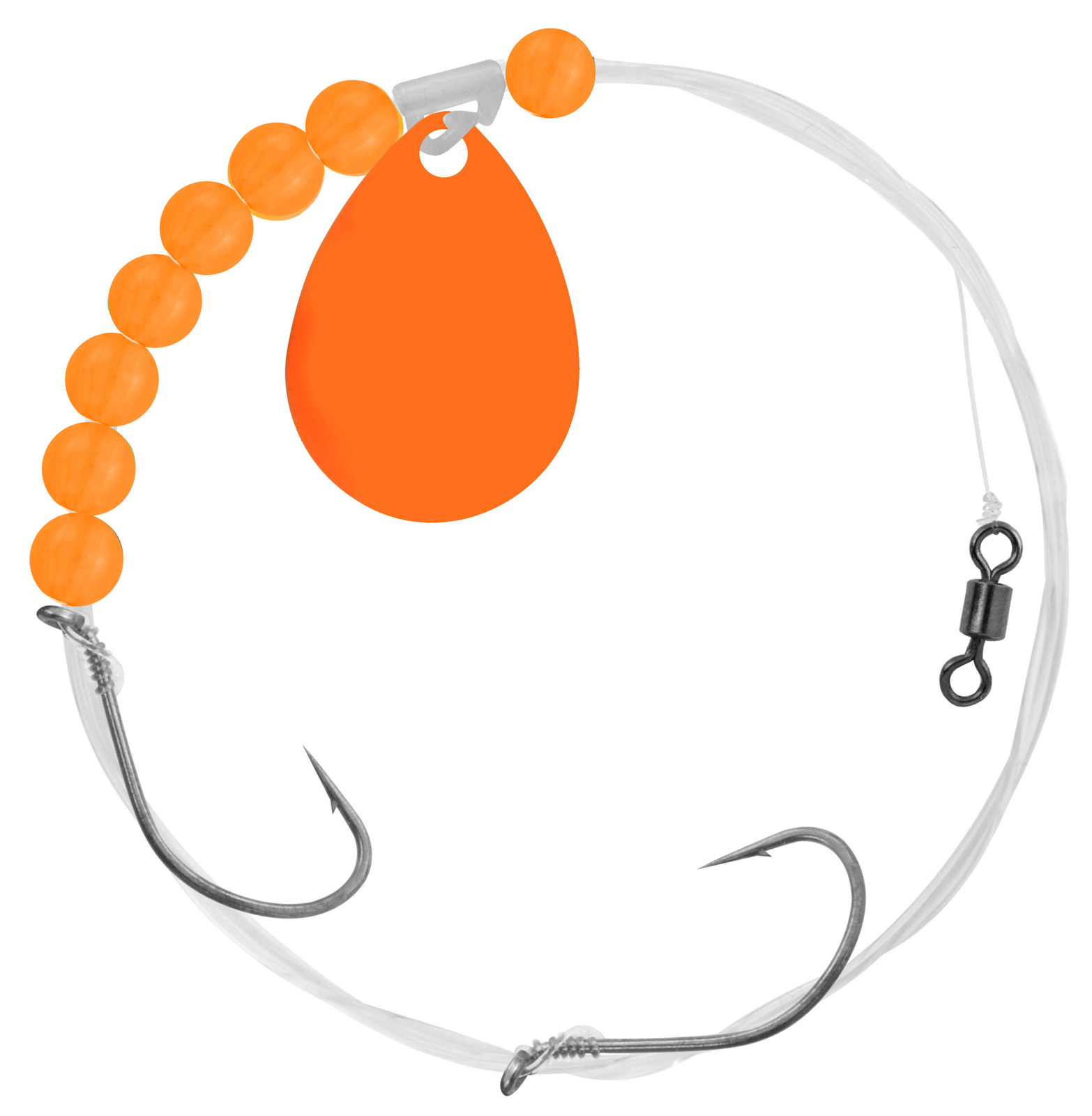 Three-hook crawler harness with popular Colorado or Airplane style spinner. Colorado spinner provides additional "lift" to harness. Each twelve pack assortment contains four each silver, chartreuse, and fluorescent orange spinner blades. Packaged on indiv