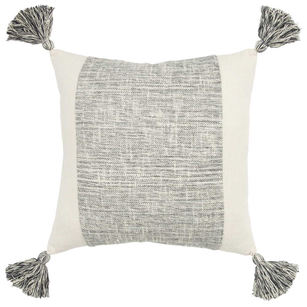 This pillow is part of the Donny Osmond Home Collection. This pillow features a color blocked construction and BOTH weaves featured take center stage. The central block is tonal in grays and naturals and uses different yarn thicknesses to create slubs that are so beautifully random and organically placed. The other block is a flatter woven cotton whose weave also yields subtle dimension and soft stripe patterning. An ever so light brushing brings all the softness of BOTH cotton applications to center stage. Four chunky two-color blended tassels accent the corners of this knife edged wonder. A solid natural coordinating back features a hidden zipper closure for ease of fill.