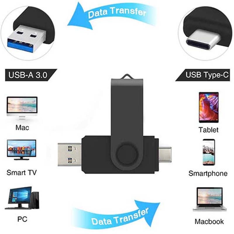 Feature: ●Material: Plastic ●USB service voltage: 4.5V-5.5V ●Storage life: more than 10 years of durable data storage ●Speed: Read Speed: 80-110 MB/S Write Speed: 15-40 MB/S ●Using A-class chip, it can be erased 100,000 times repeatedly ●High speed reading and reading without driver/power plug ●Solid storage, shockproof and electromagnetic protection ●Hardware requirements: PC with USB connection, laptop, MAC ●Operating system: Win98 / ME / 2000 / XP / Vista / win7 / win8, Mac OS 9.X / Linux2.4 or above USB connection, support hot swap Android OTG Compatible Devices: Galaxy Note 8 - Galaxy S8/S8 - HTC 10 - Sony XZ - LG V20/G5/G6 - Xiaomi 5 - Nexus 5X/6P - MacBook (2016)/MacBook Pro 13.3''/MacBook Pro 15.4'' Nintendo Switch Google Chromebook/Pixel C - Google Pixel/Pixel XL - Google nexus 5X - Google nexus 6P - Huawei Mate 9/P10 - Honor 8 - MOTO Z/Z Force - One Plus 3 and other USB C devices Store your favourite movies or TV shows from your computer on your flash drive and watch anywhere, anytime Package list: Please EMAIL us with any problems before leaving neutral or negative feedback, we will help you solve the problems ASAP. Notes: 1.The display capacity and nominal capacity are different because the calculation methods are different. Manufacturer standard: 1GB=1,000MB / 1MB=1,000KB. Operation system standard: 1GB=1,024MB / 1MB=1,024KB. About the usable capacity: please kindly note the memo about the capacity for the storage products: 8GB = approximately 7.4GB-7.6GB 16GB = approximately 14.5GB-15.5GB 32GB = approximately 28GB-30GB 64GB = approximately 58GB-60GB 128GB = approximately 115GB-125GB 256GB = approximately 230GB-240GB