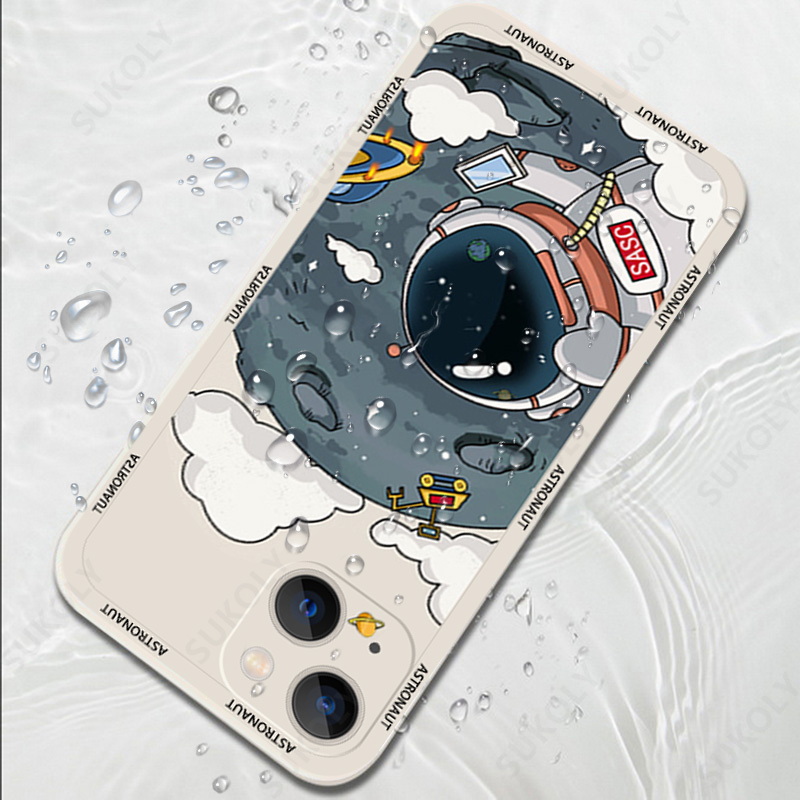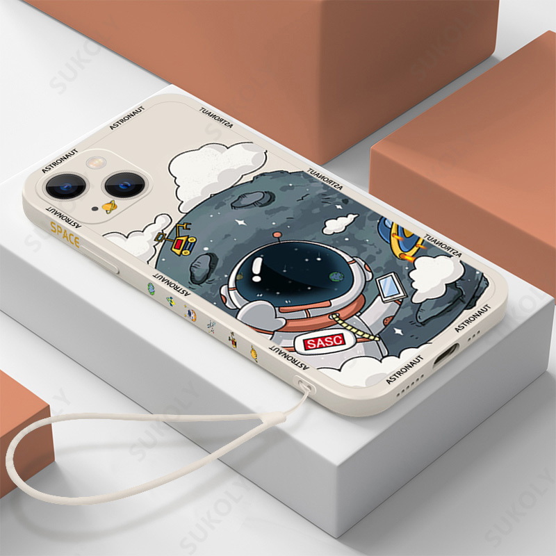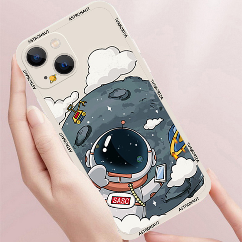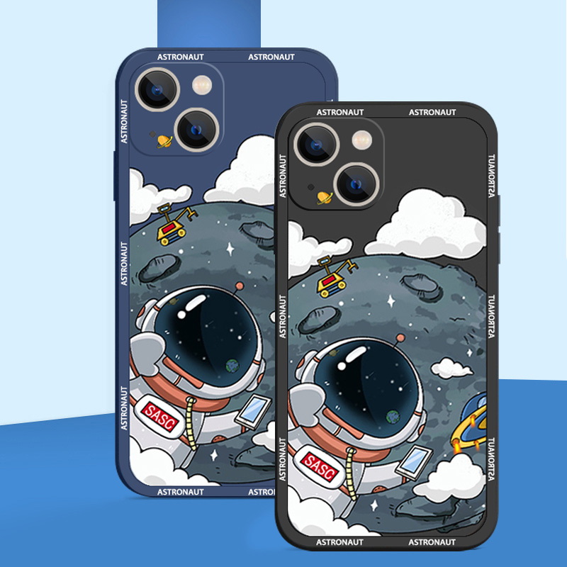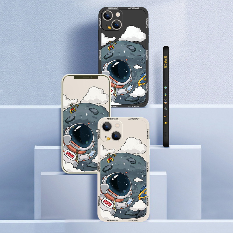 Pour iPhone 13 14 Pro Max 11 12 XS XR Astronaute Silicone Antichoc Cas de Cover