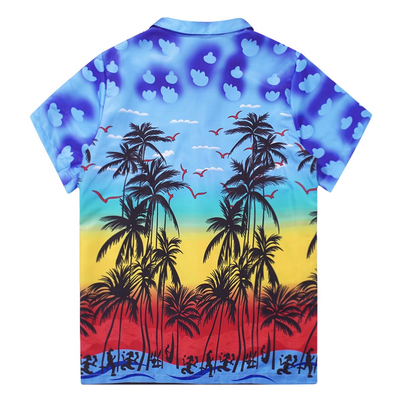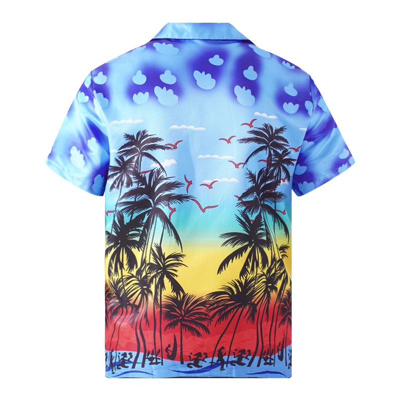 Mens Stylish Coconut Tree Printing Short Sleeve Shirt Casual Turn-down Collar Tops.