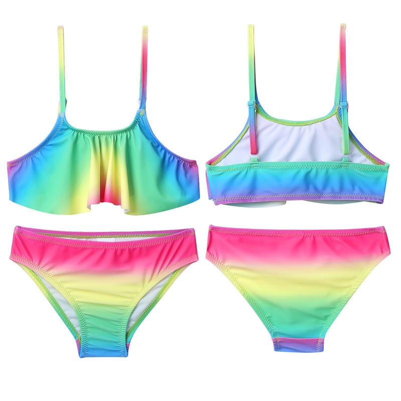 Matching bottoms with elastic waistband. Comfortable and breathable fabric, quick dry. Stylish swimwear for your girl.