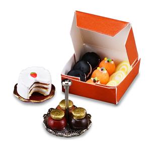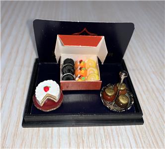 Our bakery fresh dessert make a perfect gift. This set includes a boxed set of cookies & cupcakes and a petite cake with assorted condiments. Everything looks good enough to eat! Perfect addition to your dollhouse, miniature scene or classic setting. This product is a scale miniature and not intended for children under 14 years of age.