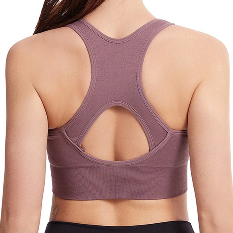 Womens seamless mesh sport bra wide shoulder straps removable cup mats high elastic bra for workout yoga.