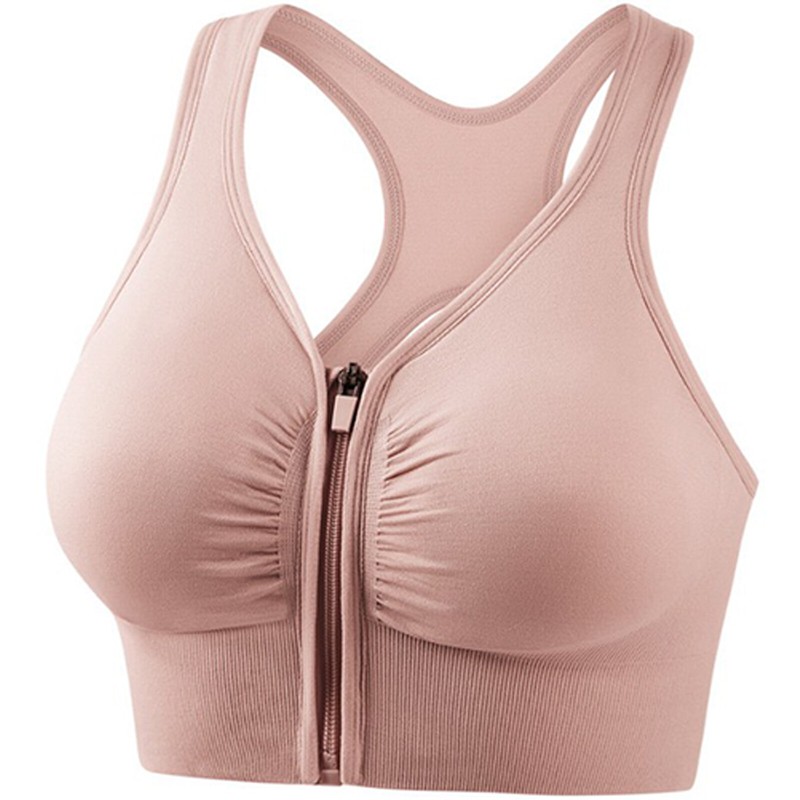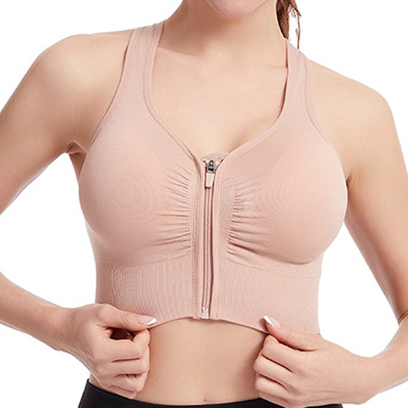 Workout sports bra provides a good support, zipper in front, easy to put on and take off.