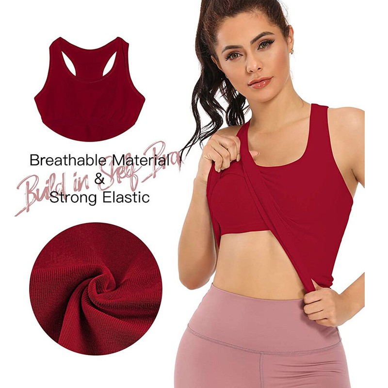 2.【Camisole with Built in Shelf Bra】Tank Top for Sports with Soft and Breathable Fabric, the Built in Shelf Bra Design Brings Medium Support for your chest, it is a must for sports or jogging.