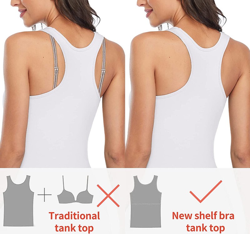 1.【Comfortable Material】60%polyester, 35%viscose, 5%spandex, Camisole with Shelf Bra with Soft & Breathable Material, Strong elastic band for inside shelf bra,skin-friendly fabric.