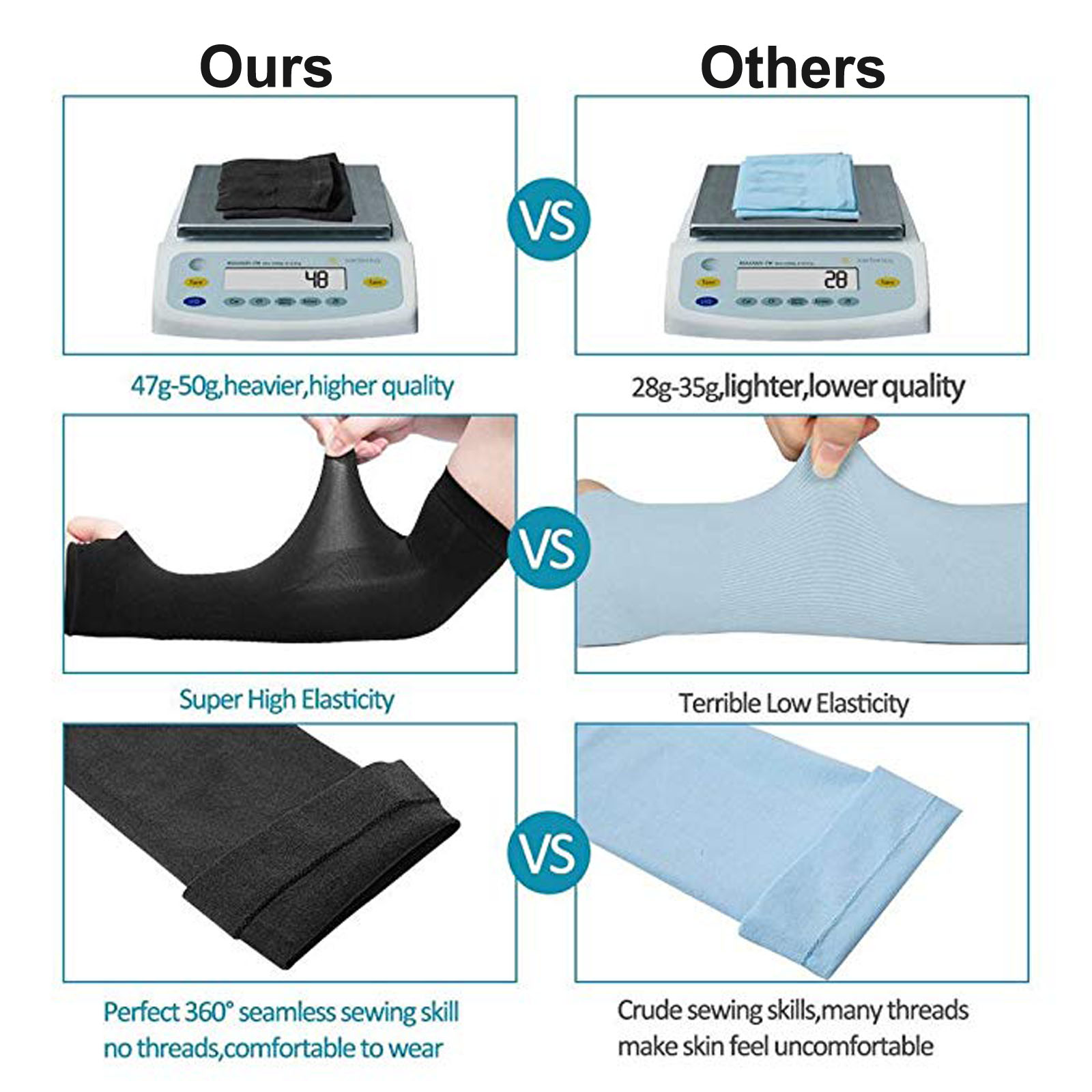 - Seamless & Durable - Unlike other sun sleeves that make you itchy and leave embarrassed imprints all over your arms, these sun sleeves are made by seamless weaving technique. With elaborate sewing and high-quality articulated seaming, the fabric is reinforced and won't unravel or tear easily even washed for long times(recommend washing with laundry bag). We make sure you'll be comfortable and happy.