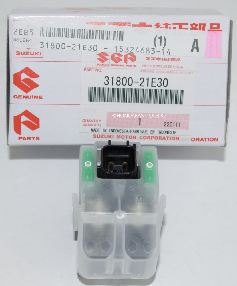 Genuine OEM Suzuki starter relay. This part comes as pictured and is still in the original manufacturers packaging. This part fits: SUZUKI