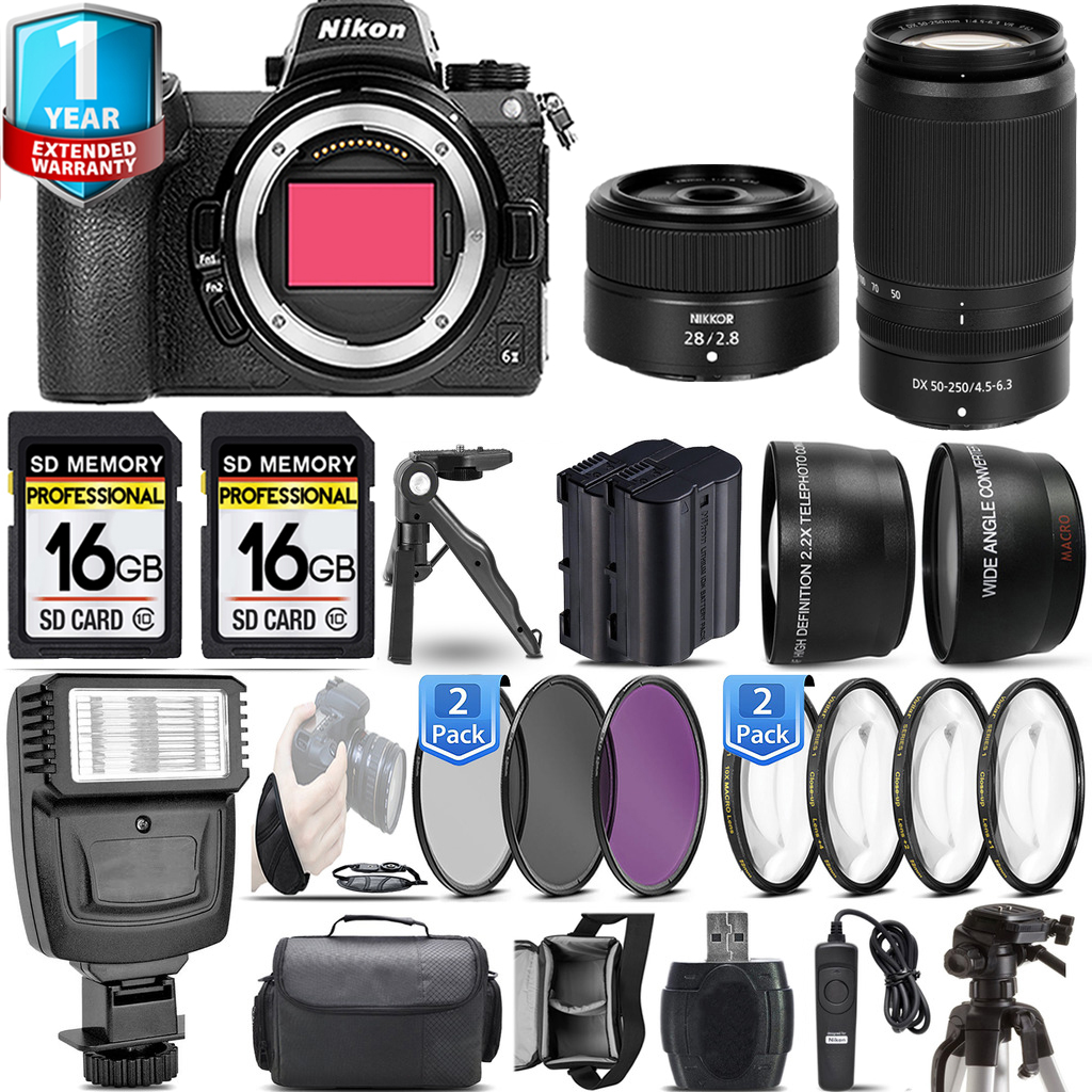 Nikon Z6 II Camera +28mm f/2.8 Lens +50-250mm+ 1yr Warranty +3 PC Filter-Kit