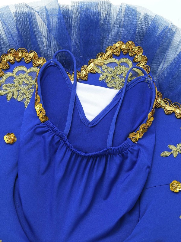 Ballet leotard dress is made of polyester, spandex and mesh material, hand wash.
