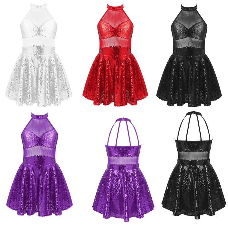 Dance leotard dress is made of polyester and netting material, hand wash.