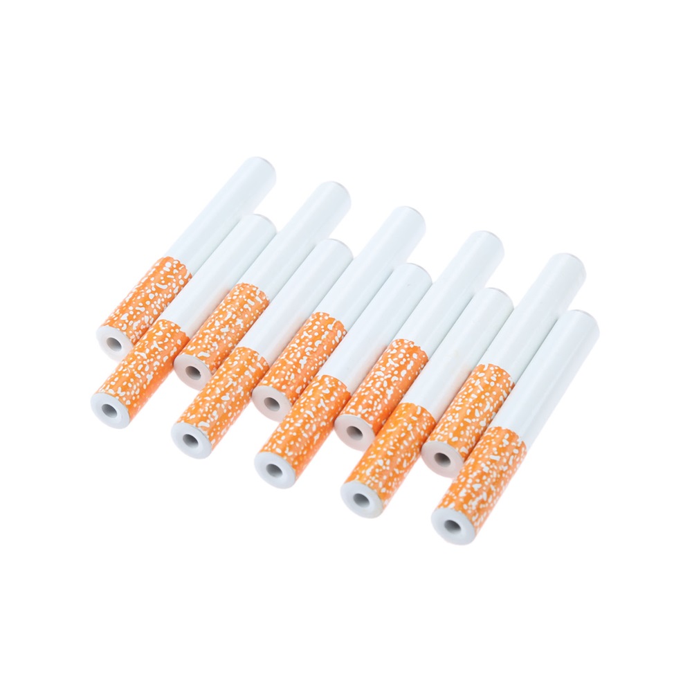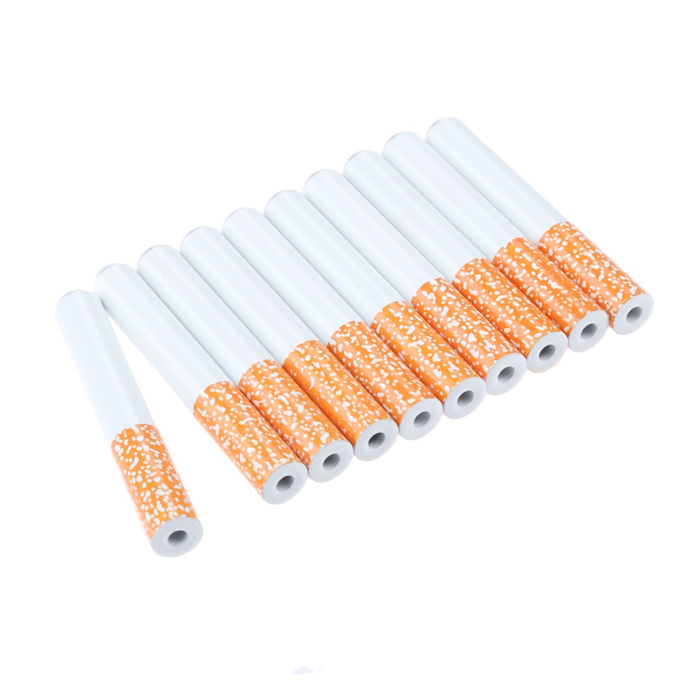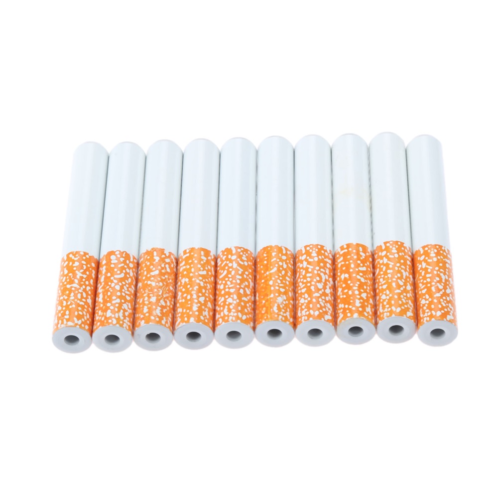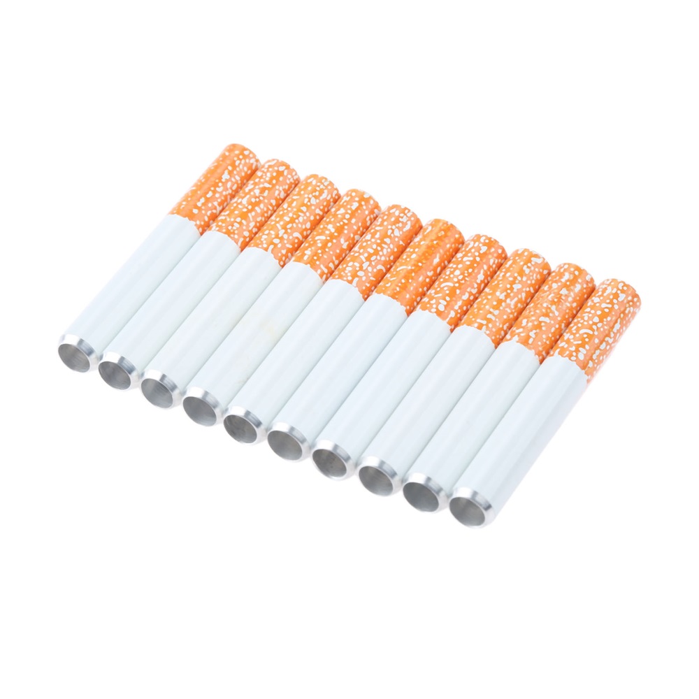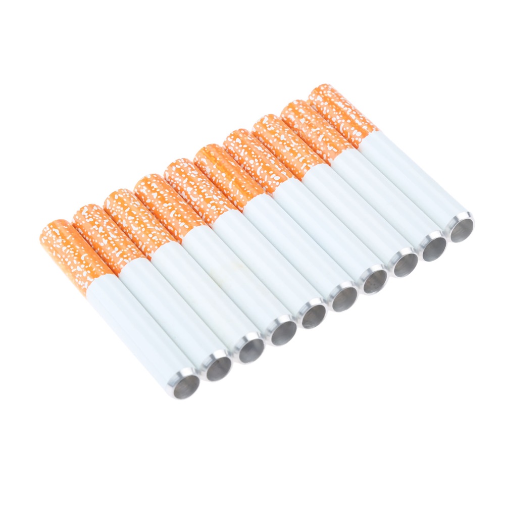 10Pcs Cigarette Shape Tobacco Pipe Metal Portable Herb Spice Smoking Pipes 55MM
