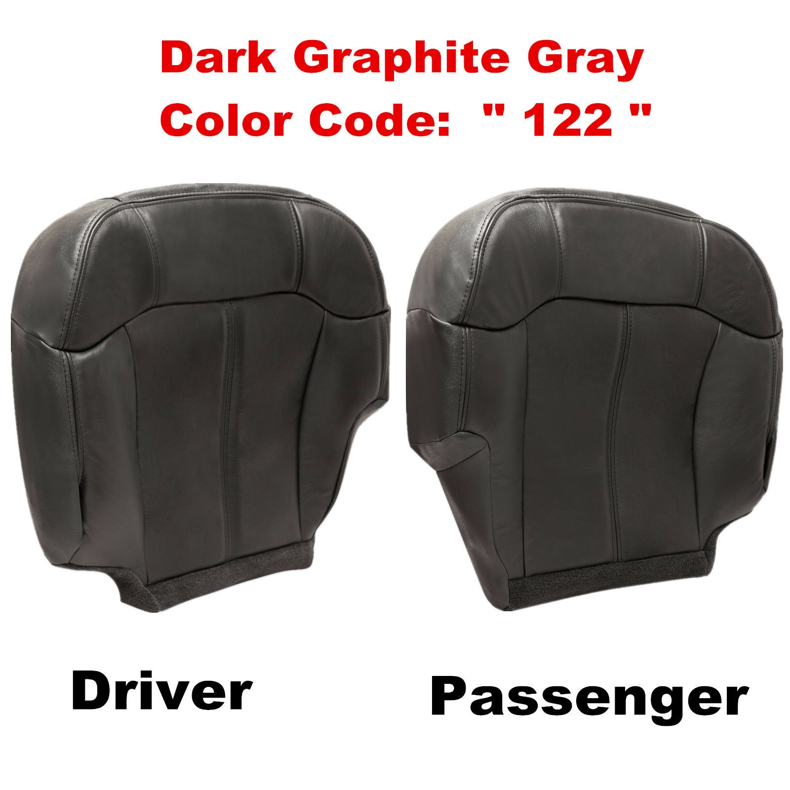 For 1999 2000 2001 2002 Chevy Silverado & GMC Sierra Driver Passenger Bottom Seat Cover Dark Graphite Gray