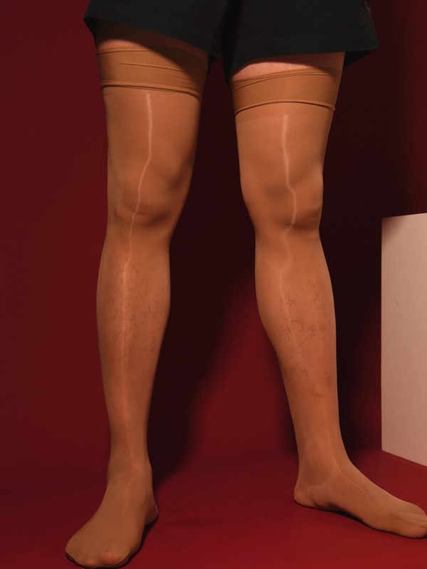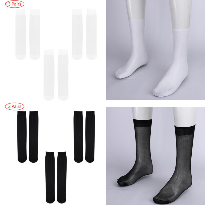 Men Glossy See-through Stockings Thin Shiny Solid Color Stretchy Sheer Thigh High Socks.