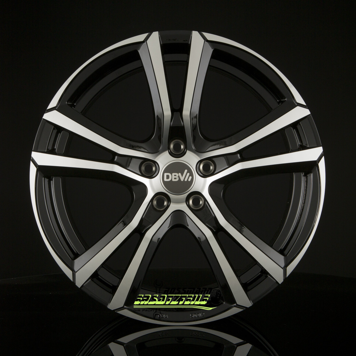 4x DBV Andorra schwarz glänzend front poliert 7.5x17 ET35 - LK5/100 ML63.3 Felgen Alufelgen