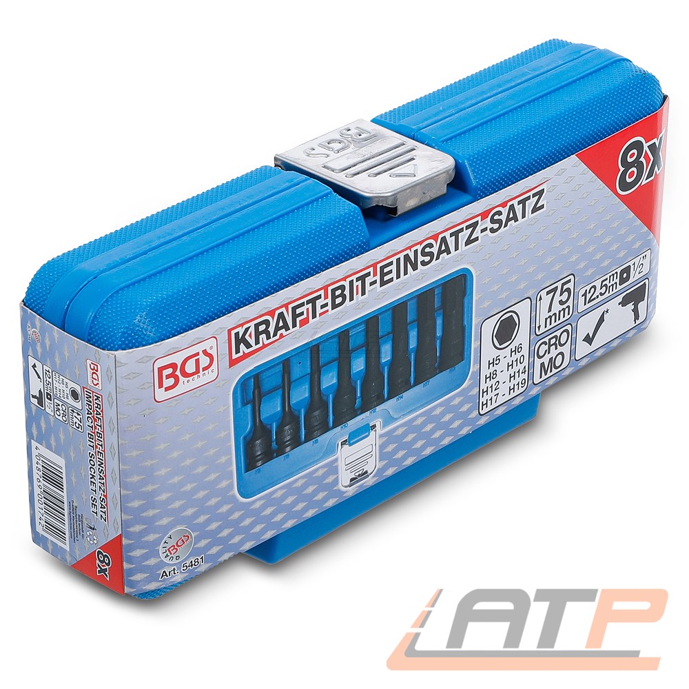 1x BGS Kraft-Bit-Einsatz-Satz - 1/2" - Sechskant 5 - 19 mm - 8-tlg.