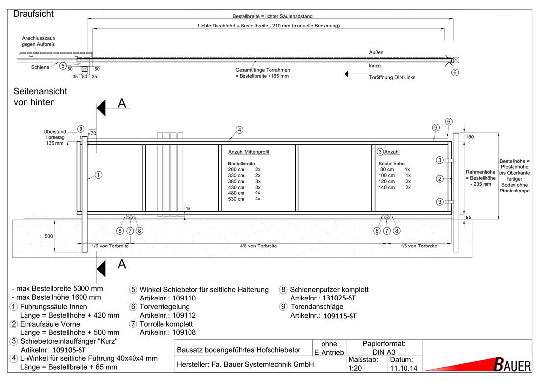 Sofort Kauf Schiebetorset Small, freitragend für Säulenlichte bis 4,0m, max. 200kg, 109725