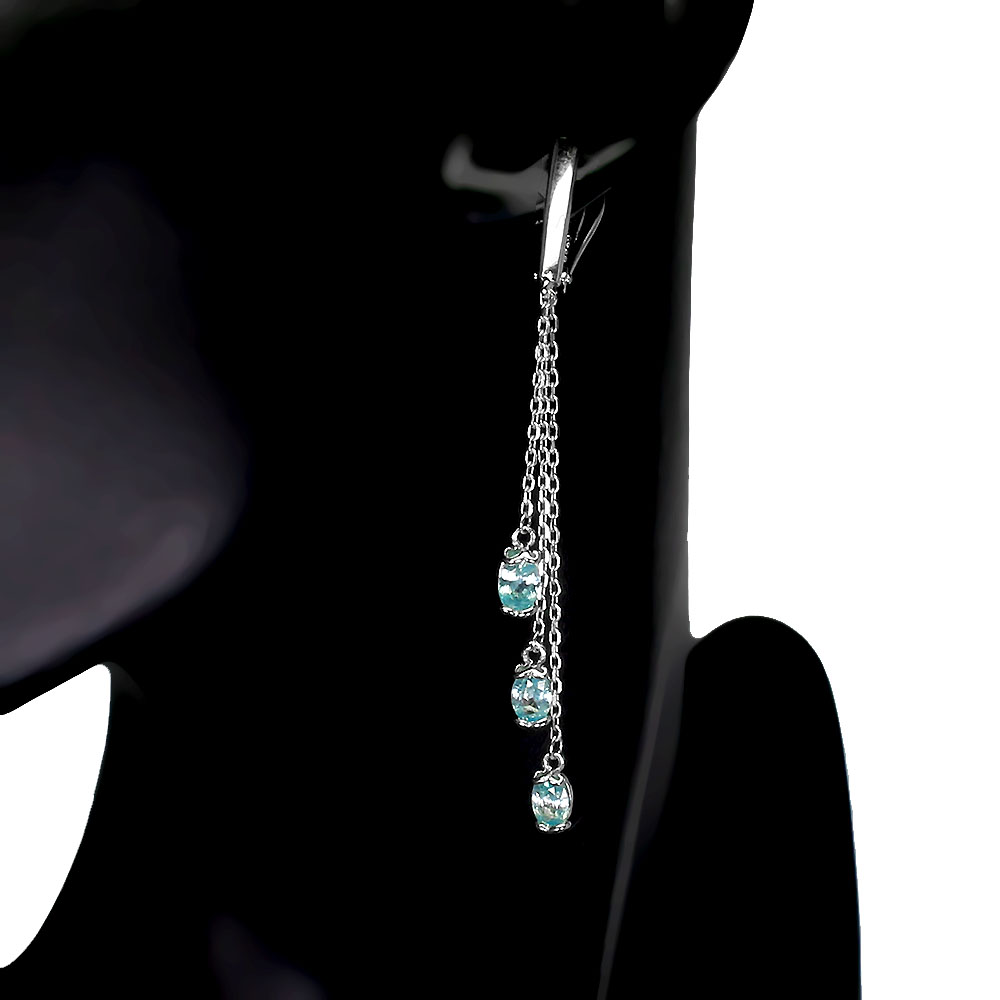Heated Oval Blue Zircon 6x4mm 14K White Gold Plate 925 Sterling Silver Earrings