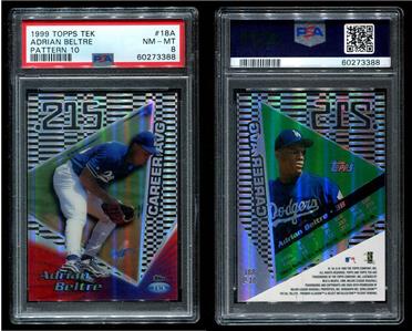Your buying an ADRIAN BELTRE 1999 TOPPS TEK #18A PATTERN 10 PSA 8 Pop 1 none higher ( as of 06/19/2022) . Graded under the latest PSA "stricter" standards. I also have a ton of low pop Prizm, Prestige, and Elite items in my store. Plastic is never perfect, and pics are as good as I can get them.