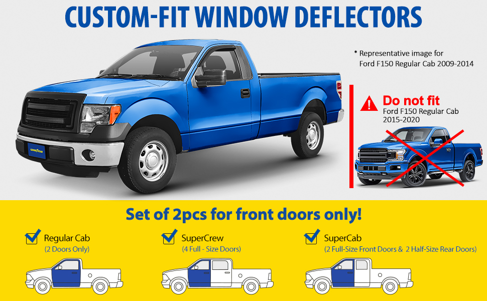 GOODYEAR SIDE WINDOW DEFLECTORS the famous high quality tape-on rain guards that let you drive with your window down in rain, snow, ice and other inclement conditions.