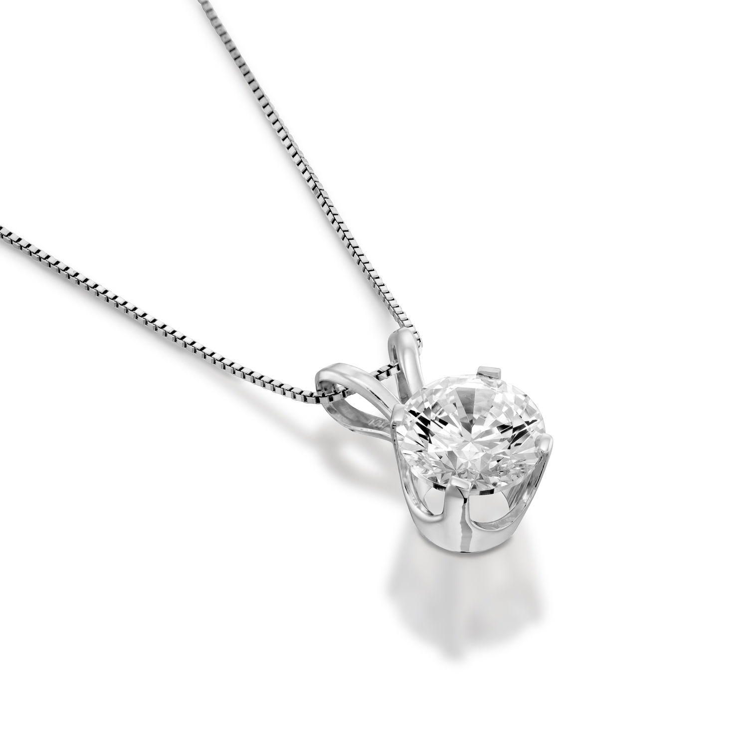 Diamond Solitaire Pendant 1CTW (Center Stone 1ct) in 14K White Gold. Free Shipping - 30 Day Returns - Appraisal Certificate Included. This beautifully designed diamond ring has been meticulously crafted to perfection. Exclusively designed by the Brillianteers Diamond Studio guaranteeing its quality and excellence. Each stone is hand picked and inspected making sure that it has the ultimate sparkle and brilliance. Our unique classic designs will be sure to draw compliments anywhere you go and will be cherished for a lifetime.
