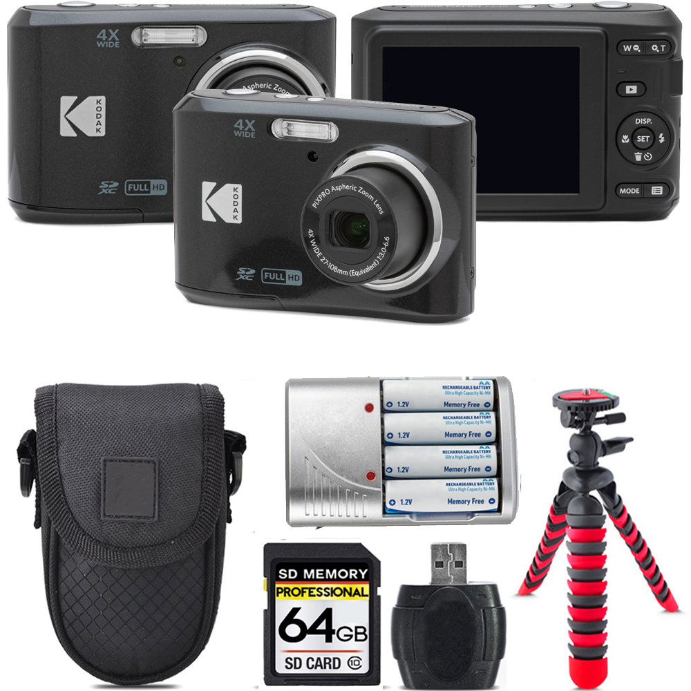 Kodak Pixpro FZ45 Camera (Black) + Extra Battery +Tripod + 64GB Kit