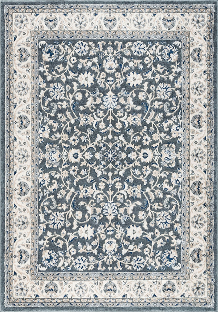 2x7 Gray Scrolls Bulbs Bordered Blossoms Floral MDN4609 - Aprx 2' 3" x 7' 3"