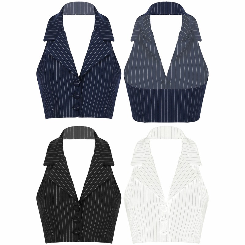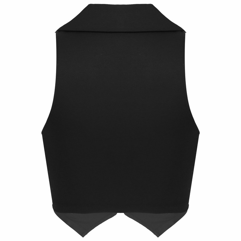 Ladies Slim Fit Lapel Deep V-Neck Sleeveless Zipper Ruched Crop Top.