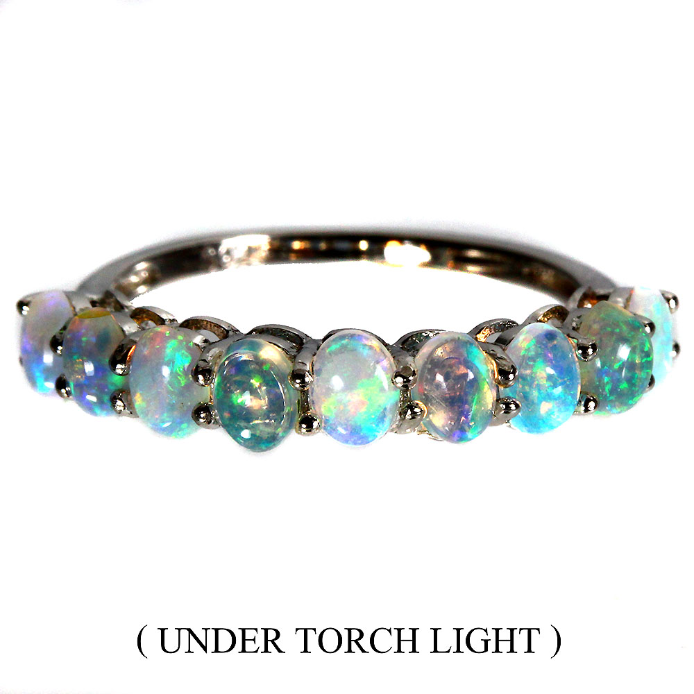 Unheated Oval Fire Opal Rainbow Full Flash 4x3mm 925 Sterling Silver Ring 6.5
